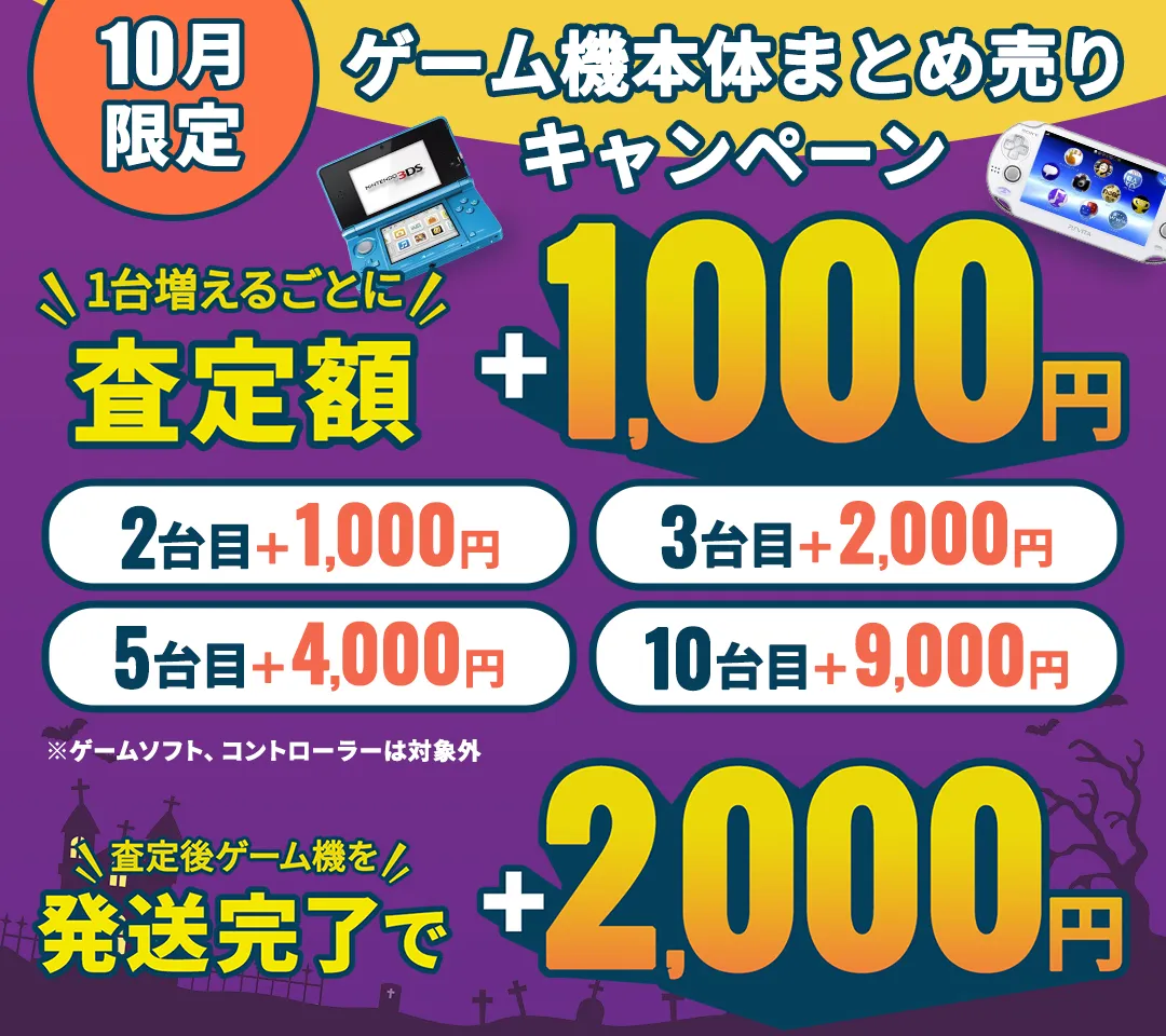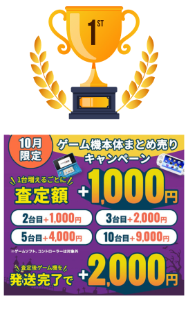 実は今だけキャンペーンを実施中で、 ゲーム機本体をまとめ売りすると+1台につき査定額1000円UPです。