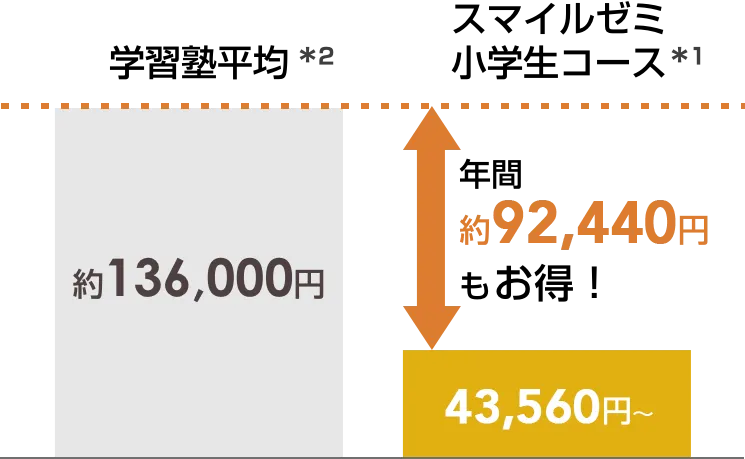 ※2. 「子供の学習費調査(平成30年度文部科学省)」において、年間で学習塾費に支出した方の平均金額(公立小学校 136,000円)