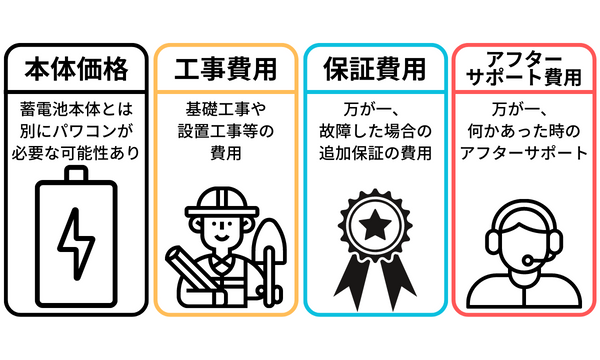 それぞれの費用は、購入する業者、選ぶ蓄電器メーカーによって変わるため、比較検討が必要です。