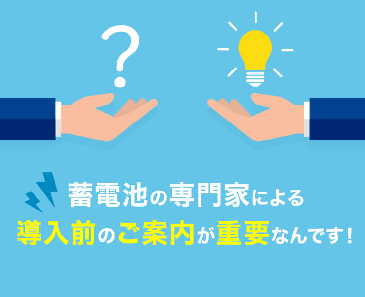 そんなトラブルを未然に防ぐために、蓄電池の専門家が力になります。
